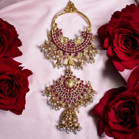 Gold Plated Juda Pin with Pearl Jhumki drops