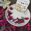 💛 Embellishments: Semi-precious ruby & emerald-hued stones, pearl hangings