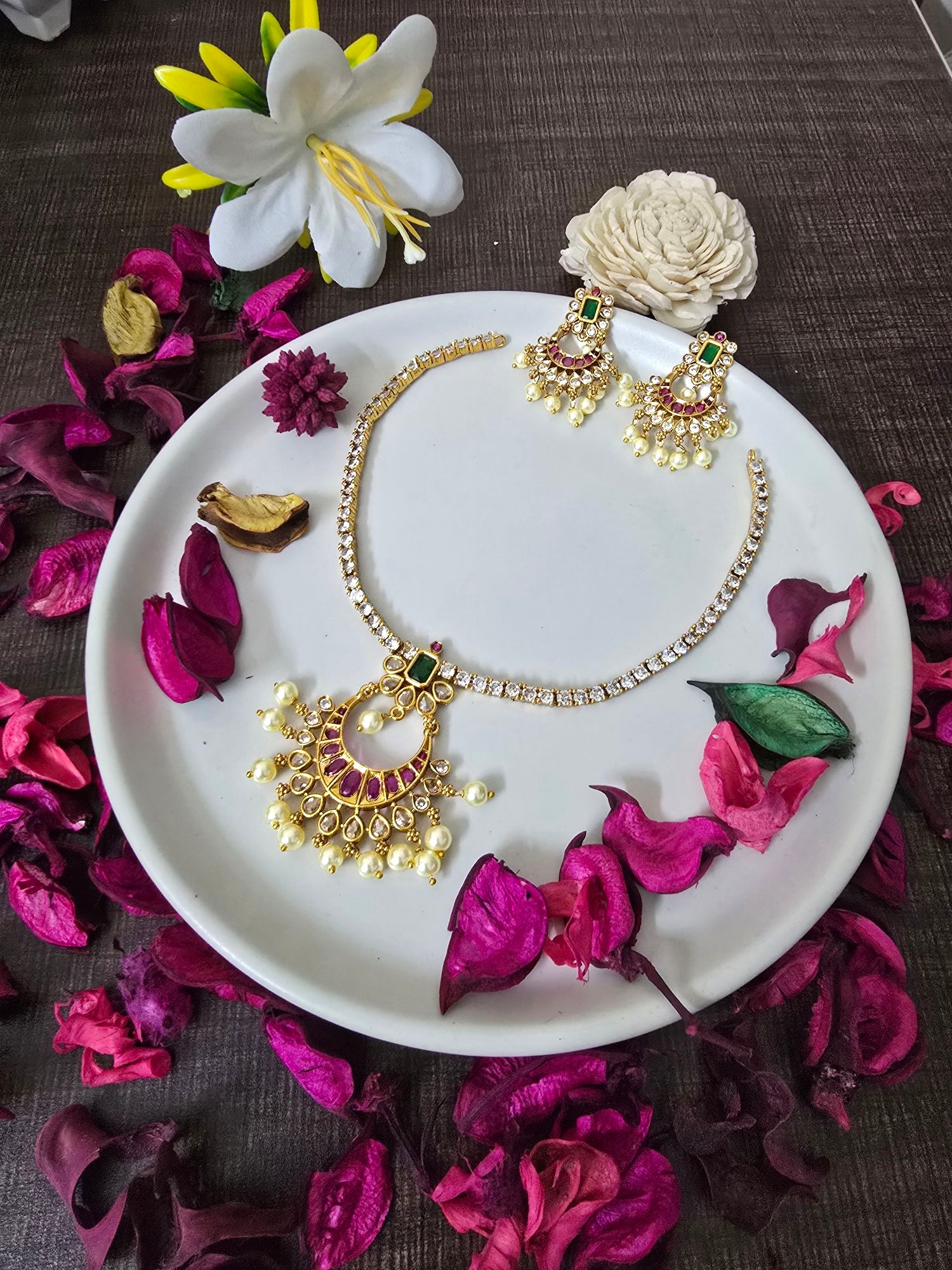 ✔ Complete Set – Includes a beautifully crafted necklace and matching earrings.