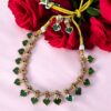 Add a touch of royalty to your ensemble with this exquisite gold-plated necklace set, adorned with sparkling Kundan stones and delicate pearl drops. The beautifully crafted floral motifs enhance its traditional charm, making it an ideal choice for weddings, festive celebrations, and special occasions. Paired with matching statement earrings, this set exudes grace and sophistication.